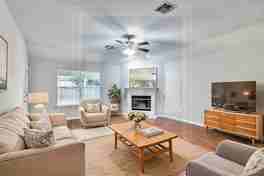 50% OFF First Month's Rent!! Charming Single-Story Corner Lot Home with Flexible Layout & Spacious Backyard! This home offers a thoughtful layout and plenty of space to live, work, and entertain. Enjoy a flex room with built-in bookshelves and French doors—perfect for a home office, study, or fourth bedroom. The family room features soaring ceilings, an abundance of natural light, and a cozy gas fireplace to complete the space. The spacious kitchen is ideal for any home chef, boasting stainless steel appliances, a center island, and ample cabinet storage. The private primary suite is tucked away from the other bedrooms and features a double vanity, separate shower, walk-in closet, and plenty of space to unwind. Step outside to an oversized backyard with an extended covered patio—perfect for outdoor entertaining, relaxing, or weekend barbecues. This home offers comfort, flexibility, and charm—and it won't last long! Apply TODAY before it's gone!