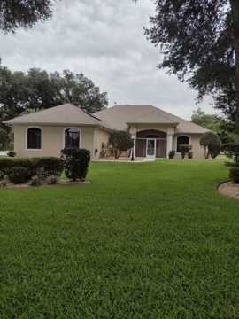 This beautiful, SOLAR POWERED, spacious home has high ceilings and an open floor plan. 2387 SF. A 3 bedroom, 2 1/2 bath home, located right across the way of a popular 18 hole golf course. The Lakes of Lady Lake community offers incredible views, shaded streets and gated entry. This home features two master suites with a third bedroom providing space and privacy for all. The high ceilings and large windows allow a bright and airy living experience. The kitchen is equipped with stainless steel appliances and ample counter space.
