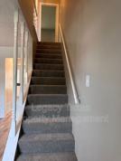 Downstairs you'll find the living room, kitchen, half bath, dining room and a small laundry room with washer & dryer connections. Upstairs is the full bath and two spacious bedrooms.