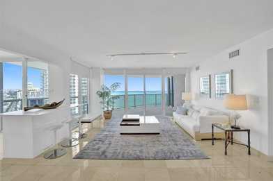 Be amazed by direct ocean and intracoastal views of this spacious, bright and remodeled unit. Furnished and equipped. Open-concept living space. Floor-to-ceiling sliding doors provide access to an oversized 330sqft balcony. Open contemporary kitchen with peninsula, white lacquered soft-close cabinets, brand new stainless steel appliances, and white quartz countertops, Laundry inside. Split floor plan provides privacy. From your king bed, enjoy direct beach/ocean views through floor-to-ceiling glass wall and intracoastal waters through a wide glass door. Contemporary bathrooms. Beach Service: Umbrellas, Lounge Chairs, Children Play Area, BBQ, Garden, Paddle/Surfboard-Bike Storage, Valet, Security24hrs. Close to Airport, South Beach, Brickell, Design District, Bal Harbor, Restaurants, Malls, Stores, Groceries. First month rent, 2 security deposit. A $1500 refundable deposit to the association. $250 cleaning fee