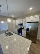 Gourmet Kitchen: Enjoy sleek countertops, custom cabinetry, stainless steel appliances, and a large island with seating.