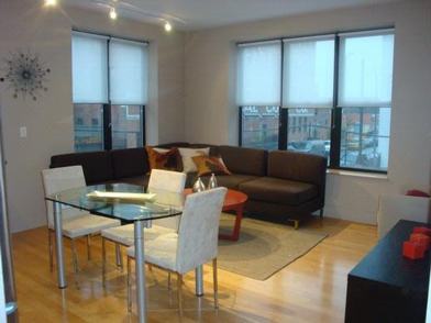 Phenomenal! this beautiful 2br condo has a open living room kitchen with wrap around windows giving ample light. there are hardwood floors throughout and central heat and air conditioning. The kitchen has all stainless steel appliances and there is beautiful modern bath. The building features free laundry, and there is a common roof deck area.