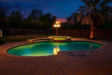 Welcome to this elegant home in Flower Mound's desirable Bridlewood community, located in the Lexington Downs neighborhood. Offering 2,845 square feet of living space, this property features fresh luxury vinyl flooring throughout with no carpet, creating a modern and low-maintenance interior. The open-concept kitchen flows seamlessly into the main living area, making it perfect for entertaining or relaxing at home. A private office and guest suite on the first floor add flexibility for working remotely or hosting visitors. Step outside to your private backyard retreat, complete with a saltwater pool and spa, play space, and a spacious yard ideal for Texas summers. Situated on a larger lot than many nearby homes and priced competitively for its size, this home combines space and value. It's just minutes from Bridlewood Golf Club and zoned to top-rated Lewisville ISD schools, offering a balance of community, convenience, and lifestyle.
