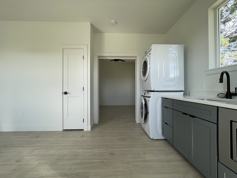 This one bedroom suite averages about 350 square feet and includes a full-size fridge, sink, microwave, and stone countertops, along with a tile-finished en suite bath with tub and shower. The common area provides a full-size kitchen, along with shared washer and dryer facilities.