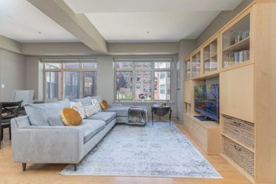 Gateway Terrace with coveted courtyard view! This beautiful loft-style home is full of sun and quiet with all windows fronting on the manicured courtyard. Its like having a park view! The open design living/dining allows for a palatial lifestyle perfect for entertaining. Kitchen is fully applianced and has a hang-out peninsula. Master bedroom has en-suite bath and a full wall of closets. The guest bedroom is perfect as an in-home office, nursery or guest space. The home is outfitted with stylish custom built-ins throughout giving generous storage. In unit washer/dryer, central AC. Private roof terrace with views of the city. Gateway Terrace is a professionally managed elevator building with beautiful outdoor space and common grill right in the heart of the sought after SOWA District. Just steps to Whole Foods, The Silver Line & many of Boston's best restaurants. Convenient to the many hospitals & universities. Large garage parking spot with room for storage for $350 additional per month. Bike storage. Pets accepted on a case by case basis.