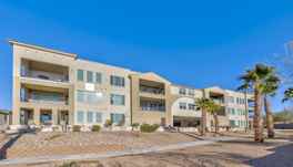 Experience elevated living in Terra Bella, a premier 55+ gated community in Anthem. This desirable second-floor residence offers exceptional privacy with no adjacent buildings and a prime location just steps from the clubhouse, fitness center, and resort-style pool. The spacious, thoughtfully designed layout features 2 bedrooms, 2 full baths, a generous dining area, and a separate laundry room with washer and dryer. The modern kitchen shines with quartz countertops, upgraded cabinetry, stainless steel appliances, and a stylish glazed French tile backsplash. Unwind in the expansive primary suite with dual vanities, a walk-in shower, and a large closet. Enjoy added touches like solar balcony shades, linen sheer draperies, and dimmer switches throughout. Secure courtyard entry, elevator access, and a two-car tandem garage complete this low-maintenance, resort-style home.