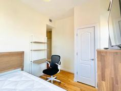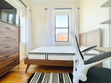 - Bright bedroom with three windows and a high ceiling in prime Crown Heights, right on Franklin Ave and Pacific Street. Room has a HD TV, dresser, desk, chair, Wifi and a large closet.