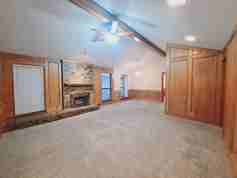 Cozy 2/2/2 nestled on a great lot in Carrolton ready for an immediate move in. Front entry opens to cavernous living area with vaulted wood beamed ceilings, warm paneled walls and a wood burning fireplace. Formal dining area with bonus eat in kitchen space. Open kitchen offers stove, microwave and dishwasher. Spacious master suite with large walk in closet, stand up shower and dual sinks and make up vanity. Large fenced yard, ceiling fans, light and bright ceiling fans and more. Fullsize utility room with built in shelves. This one is a must see. Call (214) 692-2240 to schedule your appointment today!
