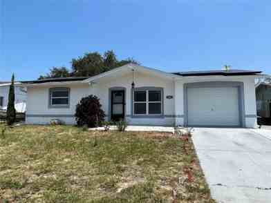 Instant Savings on Your Electric Bill utilizing the Solar Panel! This quaint home is located on a quiet street offering 2 bedrooms 1 bath and a 1 car garage ! Stepping inside you are greeted with a spacious main living area with a large picture window and tile floors. The kitchen offers updated cabinets and Stainless steel appliances including a 3 door French style refrigerator. The dining room is conveniently situated in between the kitchen and living area creating a great gathering space. Off the dining room is an additional room overlooking the backyard. French doors lead to a covered lanai. The 2 bedrooms share an updated bathroom with walk in shower and updated vanity. With easy access to Hwy 52, Hwy 19 along with local shops and eateries, make this your new home today!