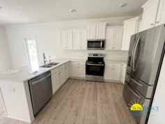 Located in the desirable neighborhood, The Preserve at Paradise Cove, which is a new D.R. Horton community located just north of Highway 98, and east of Hwy 395. Point Washington sits just outside the neighborhood and both 30A beaches and Choctowhatchee Bay are just a short drive this gorgeous 4 bedroom, 3.5 bathroom home offers an attached 2 car garage and driveway parking and is a must-see! The home’s open layout to the main living areas gives it a tremendously spacious and inviting feel. The living room flows seamlessly into the spectacular full eat-in kitchen with its recessed lighting, breakfast bar, ample counter/cabinet space, and all stainless appliances. A powder room is located off the main living space. The primary suite is located on the first floor and is a dream come true with dual vanities, a garden tub, a stall shower, and a large walk-in closet. Upstairs you will find an additional large living room/ flex space, three roomy bedrooms, one that features a jack-n-jill style full bathroom along with an additional full bathroom down the hall for the other guest bedroom. A laundry room with a washer/dryer provided completes the interior layout of this great home. Outside you will enjoy a nice covered patio, a fully fenced-in backyard, and views of the pond perfect for relaxing or entertaining guests. Living in this Santa Rosa Beach home you can take advantage of this sought-after community lined with sidewalks, green space, and a dog park.