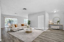 This single-story home offers a practical and comfortable layout with 3 bedrooms and 2 full bathrooms across 1,316 square feet of living space. The exterior features a clean, low-profile design with a driveway and attached garage, along with mature trees providing natural shade. Inside, the home includes open common living area with durable flooring and neutral finishes that allow for flexible furniture arrangements. Large windows bring in natural light, enhancing the sense of space throughout the main living areas. The kitchen is equipped with white cabinetry, solid-surface countertops, and ample storage, along with a functional layout that connects easily to the dining and living areas. Updated fixtures and clean finishes are visible throughout the kitchen and cabinets. The bedrooms are well-sized and feature consistent flooring, neutral wall colors, and standard closets. Both bathrooms are designed with practical layouts and include tub/shower combinations and updated vanities. Located in Spring Hill in Hernando County, this property provides convenient access to local roadways, shopping, dining, and everyday services. Disclosure: Some images have been virtually staged to better showcase the true potential of rooms and spaces in the home.