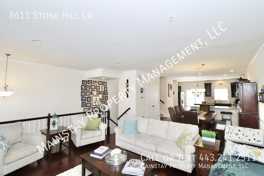 Available immediately! Welcome to 8611 Stone Hill Lane, a 4 bedroom luxury townhome located in the desirable Fieldstone Preserve community of Laurel. Constructed in 2015, this home offers an open floor plan finished with gleaming hardwoods and a beautiful kitchen complete with granite countertops, SS appliances, a breakfast bar, and center island! Even more, the main level includes a butler's pantry w/ wine rack situated between a spacious kitchen pantry and a half bath. Sliders from the kitchen lead to a large private deck that overlooks the backyard. Upstairs features plush wall to wall carpet, spread from the primary bedroom to the two additional bedrooms. Primary bedroom includes a walk in closet and en-suite bathroom with dual vanity, separate toilet room, and stand up shower! Enjoy the convenience of laundry and secondary full bath on this level as well! Up one more level is a bonus room to be used as a 4th bedroom, home office, gym, or rec space! Half bath and yet another private balcony included on this 4th level! Bottom floor is finished as another rec space, with a full bath and access to the beautifully fenced in backyard. Enjoy the community amenities including a community pool, club house, and playground! Close proximity to grocery stores, restaurants, Monarch Global Academy, major commuting routes, and more! Pets under 30lbs negotiable with $45/month per pet in pet rent. 10 minutes from Fort Meade/NSA! No Smoking.