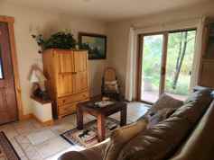 Furnished 1 bedroom, 1 bathroom lower level apartment in Park East, Glenwood Springs, with private patio, sofa, TV, queen bed, washer and dryer, full bath, dishwasher, stove/oven, full size refrigerator and air conditioning. Comes with everything seen in the pictures and 1 parking spot in driveway. Beautiful views of the red sandstone cliffs and close walking distance to the river. Owner lives upstairs in main house.