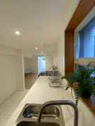Large glass entrance door and multiple windows allows ample light into the apartment.