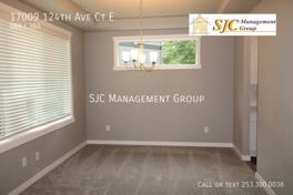 Welcome Home! we have a fantastic home available for rent in Puyallup, Five bedrooms, 2.75 baths. Open concept living, gourmet island kitchen (gas stove) with Quartz counters, all stainless appliances, a butler's pantry and formal dining room. Big living room with a gas FP and lots of windows for extra light. Sliders downstairs open to a private and fully fenced yard. Extra big mud room too. One bedroom and a 3/4 bath on the lower level. Upstairs we have a huge bonus space that transitions to the 4 other bedrooms. A big primary bedroom with private 5 piece bath with soaking tub. another full bathroom and 3 more bedrooms! Close to Egerton Elementary school. Lawn care is included with rent. Tenants are responsible for obtaining and maintaining renter's insurance throughout entire tenancy. Utilities not included. For further details or to schedule a viewing, please contact the leasing team at SJC Management Group today!