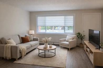 Bright East Facing 1 Bedroom. Includes Vinyl plank flooring, Window Coverings, Includes 1 energized parking stall, inexpensive laundry facilities on site. We are a short 15 minute walk U of A, along with close proximity to Safeway, Banking, restaurants and shopping, biking trails close by, Saturday Farmers Market and bus service to all areas of the city is 1 block away. Very Quiet Adult Building. Cats are negotiable. We would like a 13 month lease for 1 month Free.