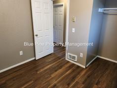 2 bedroom 1 bath main level unit apartment located in Pocatello with plank flooring and paint with white trim throughout unit.