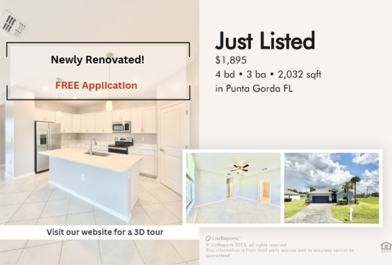 Beautiful 4 bed 3 baths Single-family home available for lease in Punta Gorda with 10 Stars Property Management