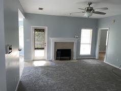 3bd/2bth open floor plan featuring large living room w/ feature fireplace and wall of windows facing the rear yard.
