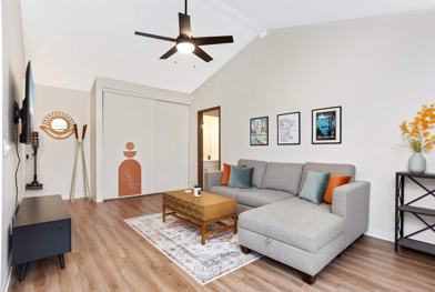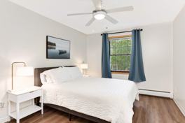Looking to buy a home and do not want be locked in a full lease - this condo is for you! Located on the second floor of this condo complex, this quiet one bedroom, one bathroom condo features vaulted ceilings, and ample natural light! The galley style kitchen has brand new stainless steel appliances. The kitchen is completely stocked with whatever you might need. Bonus Keurig machine with starbucks coffee pods provided. The dining area has a cafe table with two leather seats. The living room provides a sectional couch, TV stand, and a mounted 55 inch TV. The master bedroom has a large closet, and full bathroom attached. The laundry room is on the first floor, right below the unit, and we provide a $50 laundry card for your stay. Common areas include a swimming pool, tennis court, fitness center, and more! This property is located near many parks, shops, and restaurants.