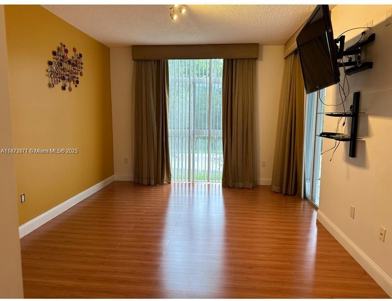 Amazing corner unit in the heart of Doral, close to shopping centers, banks, Citi of Doral, ClubHouse, with Pool, Jacuzzi, sauna, Gym, tennis court, pickleball court, schools, it has curtains, 3 bedrooms, 2 full bathrooms, all renovated, new kitchen, wood floor, Master has a TV with control and curtains, with walking closet plus additional closet. Second and third bedrooms have 1 TV with control, 6 stools, some pictures on the walls, Multiple closets, Washer and Dryer inside. Bathroom with Jacuzzi, screen balcony, 2 parking spaces, plenty of parking for visitors, NO PETS, price includes water, garbage, sewer and association duties. The tenant is membership of the Country Club of Doral, No pay membership. No commercial cars.