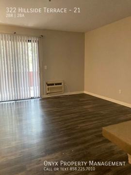 322 Hillside Ter #21, Vista, CA is a 2 bedroom, 2 bathrooms apartment for rent. It is located in the Vista neighborhood of Vista. It has apartment amenities including on-site laundry, air conditioning, dishwasher, and ceiling fan.