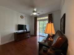 Welcome to this stunning two-bedroom, two-bathroom condominium located in the desirable gated community of Tuscana Resort. Located in the heart of Championsgate, this community is ideally positioned near all major theme park attractions, renowned golf courses, top-rated restaurants, and shopping centers. Situated on the third floor of Building Seven, this unit offers convenient access to the community pool and an array of amenities. The well-appointed interior features an open floor plan, boasting granite counters in both the kitchen and bathrooms, as well as laminate flooring in the entryway and dining areas. Step outside your unit, and you'll find yourself just a stone's throw away from the resort-style zero-entry pool, complete with hot tubs for ultimate relaxation. Stay in shape at the on-site fitness center or catch a movie with friends in the 30-seat theater. The clubhouse offers additional entertainment options and serves as a hub for social gatherings. Not only does this unit offer a fantastic location within the community, with close proximity to local restaurants and shopping, ensuring you have everything you need right at your fingertips. Plus, with its proximity to all major theme parks and highways, whether you're headed north, south, east, or west, you'll have easy access to all the attractions and conveniences the area has to offer. This fully furnished condominium is located in Building 7, providing a tranquil setting with private, wooded views from the second-floor balcony. The primary bedroom is spacious and features an ensuite bathroom and a large walk-in closet. The second bedroom is thoughtfully situated away from the primary bedroom and also includes an ensuite bathroom, offering privacy and convenience for guests or family members. Tuscana Resort, with its Mediterranean-style architecture, offers a range of exceptional amenities for residents and guests alike. Take a dip in the community pool, work out at the fitness center, enjoy a movie night in the theater, or have a blast at the playground. The resort provides a perfect balance of relaxation and entertainment. Don't miss out on this incredible opportunity to rent a piece of paradise in the gated Tuscana Resort. Schedule your private showing today and experience the lifestyle you've been dreaming of!