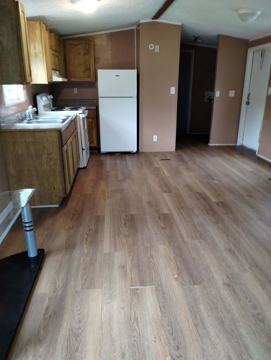 16x80 mobile home with new flooring, walls, plumbing, electrical, sealed roof, and paint.