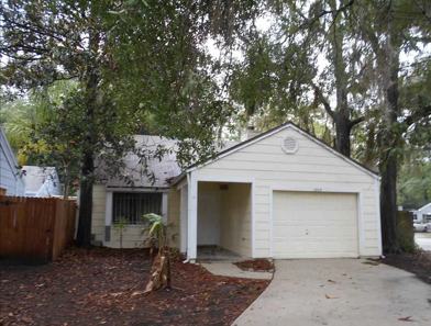 Immediate move in available Location, Location, LOCATION! This 2 bedroom, 2 bathroom villa is conveniently situated just 3 short blocks off of 441 and only 10 blocks north of the University of Florida (5-minute drive). It offers a perfect living space for graduate students, professional students, healthcare professionals, or individuals working at the university. Amenities included: central air, hardwood floors, fireplace, washer and dryer and updated bathroom. Utilities included: internet. Pet friendly. Security cameras are installed on the outside of your house. It is a quiet neighborhood, surrounded by families. Living room with TV and Roku is included. Features: - 2 bedrooms, 2 baths - Nicely landscaped fenced yard with patios - Light and bright great room with 3 sliding glass doors - Floor-to-ceiling brick fireplace - Alluring neighborhood with a peaceful ambiance - Security cameras installed on the outside of the property for added safety The prime location of this villa provides easy access to all the amenities that the beautiful city of Gainesville has to offer. Enjoy proximity to shopping centers, dining options, recreational facilities, and more. TV in the bedroom is not included. If you're seeking a comfortable and convenient home near the University of Florida, this property is perfect for you. Don't miss out on this opportunity! Contact us now to schedule a viewing and secure your new home. Rent is $1,950/month. Refundable $750 security deposit required. A non-refundable $200 pet deposit is required. Please submit the form on this page or contact Reba at 352-559-4493 to learn more.