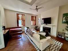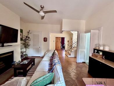 Enter through a private entrance into a grand foyer with a sweeping staircase illuminated by a dramatic skylight. This thoughtfully designed home blends historic character with modern sophistication, featuring soaring ceilings, oversized windows, and a gracious, open layout ideal for entertaining. The updated kitchen boasts stainless steel appliances and granite countertops, while the spacious living and dining areas showcase period detail and charm.