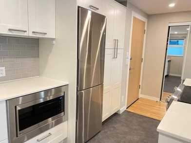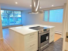 This stunning 600 sq. ft. suite is located on the 2nd floor with lots of natural light from the large windows! Enjoy the quiet West End neighborhood from your oversized east facing balcony that is large enough for a propane BBQ and a seating area. This suite is perfect for anyone who loves hosting or is working from home, with the large island contenting the living room and the kitchen which features a full set of stainless-steel kitchen appliances, white quartz stone counter-tops and custom cabinetry with plenty of storage throughout. This suite has beautifully refinished original hardwood floor. Bathroom and kitchen area have waterproof vinyl planks. In-suite laundry with a washer and dryer. Tenant’s also have access to secure bike storage, storage lockers and parking for a fee