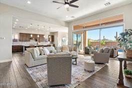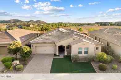 Luxury meets comfort in this stunning 4-bed, 3-bath home in the sought-after gated community of West Wing Escena! Featuring an open floor plan with 12-ft ceilings, elegant tile flooring, and a private office/den. The chef's kitchen offers granite countertops, a spacious island, stainless steel appliances, and abundant storage. The primary suite boasts a spa-style bath with soaking tub, dual vanities, and a large walk-in closet. Enjoy seamless indoor-outdoor living with a triple-panel slider opening to a covered patio, sparkling pool with water features, and low-maintenance yard. Energy-efficient solar keeps utility costs low! Owner financing is also available including lease purchase, wrap, or creative financing terms.