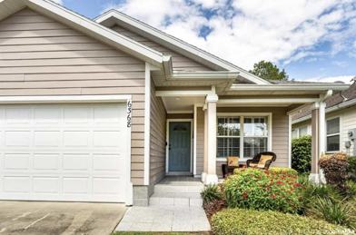 Up for rent is a charming, 3/2 home with 1.5 car garage located in the gated golf community of Turkey Creek in between Alachua and Gainesville. This home has an open, split floor plan with tile in main living areas and carpeting in the bedrooms. French doors in the living room lead out to the enclosed porch with gorgeous views of the golf course and surrounding trees. Tray ceilings in master bedroom along with walk-in closet, jet tub and shower. Amenities in the community include tennis courts, community pool, pickle ball courts, golf course with an adjoining restaurant, community playground and basketball courts. Lawn care is included in rent payment. Utilities are with the city of Alachua, not with GRU. Pet friendly home upon conditional approval on a case by case basis.