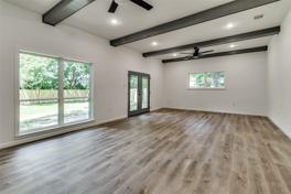 Step into this remodeled one-story home, prepare to be captivated by gorgeous updates throughout the property. Beyond the entrance, you'll discover an open living space with ceiling beams that match with color palette throughout the home. The kitchen, a culinary haven, showcases sleek white cabinetry, top-of-the-line stainless steel appliances, gray tile backsplash and sleek quartz countertops. The addition of matte black hardware adds a touch of luxury, elevating the space and adding sophistication. Retreat to the tranquil owner suite, where a spacious bedroom, walk-in closet, and luxurious en-suite bathroom await. Outside, the landscaped yard offers both privacy and tranquility. The updates extend to the exterior fixtures, further enhancing the property's captivating curb appeal. Don't miss out on this great property. Schedule your showing today.