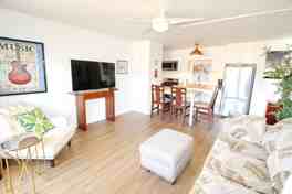 This nicely furnished one bedroom one bath unit is located in desirable South Kihei across from the Cove, Charley Young, and Kalama Beach Park. Swim, SUP, surf, kayak, snorkel, or just sunbathe right across the street. Multiple amenities at Kalama Beach Park include tennis, baseball, basketball, skateboarding, roller skating, and is a perfect for watching the sunset to end the day. Immediately out front is a bus stop and very close to restaurants, bars, coffee shops, stores, and library. Inside, the unit has been tastefully remodeled from floor to ceiling, including new Luxury Vinyl Planking flooring, freshly painted interiors, wall unit A/C in living room, new stainless steel appliances including a gas range, butcher block counter top, soft-close cabinetry, all new electrical fixtures, new stacked washer/dryer in unit for your convenience, newly renovated bathroom, king size bed, ample closet space, and quality furnishings. Solid concrete construction increases ones comfort level with cooler temps and increased soundproofing. Unit is well-situated in the building with well-lit grounds and cameras on exterior of building for safety.