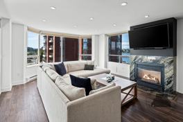 This recently remodeled two bedroom plus den in the iconic Harbourside Residence offers a prime waterfront location at the waters' edge. The suite features beautiful refinished engineered floors throughout creating an elegant and inviting space. The north-east & west facing corner suite fills with natural light, showcasing ocean and mountain views from the kitchen window and the inner harbour from the living room.