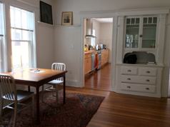 1100 square foot furnished apartment with cherry floors, living room, dining room, spacious eat-in kitchen with Bosch appliances, custom countertops. Classic New England house with front and back porches and yard.
