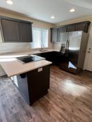 The front entrance includes the living room with LVP flooring throughout. Adjacent to the living room is the kitchen. The spacious kitchen features amply cabinetry, quartz countertops, all stainless-steel appliances: refrigerator, range, and dishwasher. There is a powder room conveniently located on the first floor.