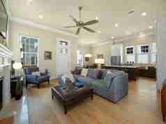 This single-family home radiates with its modern, open layout and high-end custom features. The family room is bathed in natural light, with 12-foot ceilings, elegant molding, and hardwood floors. It also includes a wall-integrated Frame TV and opens to a covered patio with an intimate private garden.