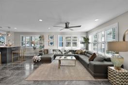 Breathtaking views surround this beautifully remodeled 3-bedroom, 2-bathroom condo, offering the perfect blend of modern luxury and comfort. The open-concept layout features a sleek waterfall wet bar, large wine fridge, and a chef's kitchen with ample cabinetry and generous counter space—ideal for entertaining. Expansive impact windows flood the home with natural light while framing the stunning views. The master suite is a serene retreat with his-and-hers walk-in closets, dual-sink vanity, a spa-like shower with dual showerheads, and a cozy sitting area. Additional bedrooms provide generous space and storage. Offered fully furnished and move-in ready—just bring your suitcase! Seasonal rental is also available.