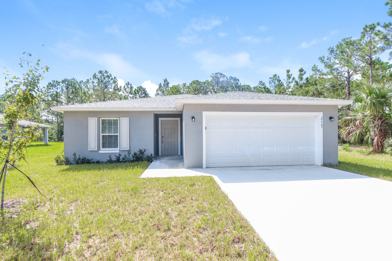 OUTDOOR SPACE: Step outside to a lovely rear covered porch, ideal for enjoying the Florida sunshine. The two-car garage provides ample space for parking and storage.