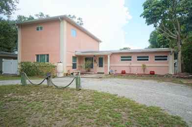 Tampa Apartments·South Westshore ApartmentsSOUTH TAMPA - Welcome to this spacious and unique two-story home offering 2,822 square feet of living space and a convenient circular driveway for easy off-street parking. With four bedrooms, two bathrooms, and a variety of comfortable living areas, this home is perfect for those looking for space and flexibility. The main level features three bedrooms, sized at 10x10, 11x12, and 11x10, along with a hall bathroom that includes a jacuzzi tub and separate circular shower. The living areas include rooms with glass walls, built-in glass shelving, and a decorative fireplace (not functional). The kitchen is equipped with stainless steel appliances including a refrigerator, dishwasher, microwave, and flat-top induction range. A large island provides additional workspace, and a pass-through connects the kitchen to the living room for easy entertaining. Upstairs, the expansive primary bedroom suite (15x25) serves as a private retreat. It includes a second room (19x12) with a mini-kitchen featuring a sink, countertop microwave, and refrigeratorperfect for a sitting room, office, or guest space. A private balcony extends from the suite, though the spiral staircase is off-limits. The en suite bathroom includes twin sinks and a large tiled shower. The fenced backyard is a true oasis with an inground pool, Astroturf lawn, patio furniture, and a storage shed. Pool service is included in the rent for added convenience. The home comes with window treatments, and a mix of carpet and laminate flooring. Items such as TVs, countertop microwave, mini refrigerators, patio furniture, jacuzzi tub jets, and solar panels for the pool are provided for tenant use but will not be repaired or replaced.