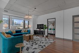 Spacious Open Concept, 1085 Sqft Corner Suite With Soaring Exposed Concrete Ceiling. Enjoy A Coffee On Your Stylish Breakfast Bar Or Watch The Sunset On Private Balcony.