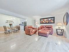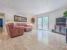 Modern and updated 2 bed, 2 bath condo. Prime southern-facing, full of natural light, you have a delightful view of the pool. The secure building promises peace of mind and close proximity to all amenities ensures that your every need is met. Centrally located to shopping, dining, entertainment, or outdoor activities. This updated condo has gorgeous maple hardwood floors, white kitchen and stainless appliances. The primary suite has remodeled large, tiled shower and W/I closet with closet system, providing ample space for your wardrobe and built in safe for valuable belongings. The second bedroom can serve as a cozy guest room or a versatile home office. This condo comes equipped with a Bosch stackable washer/dryer in-unit, offering ultimate convenience for laundry needs. 1 car garage included.