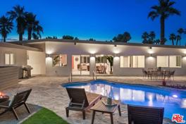 Unique opportunity in South Palm Desert to lease a fully renovated and furnished 1961 Mid Century modern home with clean architectural lines, curb appeal, and tastefully restored with integrity to its original design while upgraded for modern living. This home sits on an expansive 10,890 sqft lot with great mountain views featuring 4BD 3.5BA in the main house plus a fully permitted ADU (462 sq ft approximately) with a full bathroom + kitchen that could be used as a Guest House, Pool House, or Income unit. This bright and open floor plan is equipped with a stunning kitchen that features SMEG Appliances, quartz countertops, an oversized custom skylight, top of the line custom cabinets with floating shelves and LED lighting, brass VIGO faucet, polished marble mosaic backsplash, and brass gold pendants sitting over a spacious waterfall edge island. A slatted wood panel wall on one side and a breakfast nook on the other complete this open concept. A formal dining area sits off a sliding door which leads to an entertainer's backyard that features a spacious tiled pool/spa, a floating sundeck, outdoor dining area, gas firepit, putting green with a turf area, desert landscaping surrounded by tall green hedges, DG, palo verdes, cactuses, lemon tree, agaves, golden barrels, and low voltage landscaping lighting. The floors in the living area are matte porcelain tile which continue on to the spacious bedrooms and junior primary suite with an en suite bathroom. The oversized primary bedroom has a nice separation from the other bedrooms on the opposite wing of the house. The primary has its own enclosed patio with decorative tile and an oversized bathroom with a shower and a freestanding soaking bathtub, dual vanities, and a skylight. Other features include a powder room with festive tile and wall paper, pocket door, leased solar panels, custom doors, VIGO bathroom faucets, floating vanities, recessed lighting, light dimmers, brass modern door handles, new HVAC system with two additional mini split units, NEST thermostat, new water heater, new windows, electrical upgrades, plumbing upgrades, and many structural upgrades. Enjoy the barrel Sauna during the winter. Large parking driveway with a carport and Tesla EV charger! Close proximity from the best restaurants and shopping at El Paseo. Great golf courses like Vintage, El Dorado, Shadow Mountain, and Indian Wells are all a golf cart away. Price is for full year rental, month-to-month rental and/or seasonal rental available at a higher price inquire for seasonal/monthly pricing.
