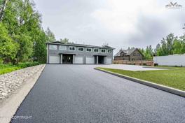Units 2 and 3 boast modern and luxurious features, including 3 bedrooms, 2.5 bathrooms, and an oversized 364 sq. ft. 1-car garage. The kitchen is a chef's dream with quartz waterfall countertops, stainless appliances, and a large island. The primary bedroom features a walk-in closet and ensuite bathroom with a corner jacuzzi tub, his/hers vanities, and a custom tile walk-in shower. These units also feature an office/flex room upstairs. The spacious laundry room provides linen shelves and additional storage. Contemporary colors with black doors, grey walls, and white ceilings create a sleek and stylish atmosphere. Don't miss this commuter-friendly location with easy access to Anchorage.