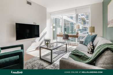 *During COVID-19, all Landing apartments are available to view through a virtual tour on the Landing website or through the Landing app. The application process from sign up to confirmation can be completed 100% online. Welcome to Landing! This is the modern renting experience you are looking for: * Fully Furnished * $0 Deposit * Flexible Leases * 24/7 Concierge * Utility & Wifi When you enter your home for the first time, you’ll notice the modern tones throughout, from the open layout to the kitchen’s granite countertops and tile backsplash finishes. Our included furniture and decor are expertly selected and placed for this individual layout, and the mounted Samsung Smart TV’s are ready for your enjoyment. Finally, your home is filled with our convenience amenities from the luxurious bedding to the completely stocked kitchen. Every element of your new home invites you to step right into a hassle-free living experience. Your home includes: * Bed and cozy linens * Ultra-fast Wifi * Lush toiletries * Plush towels * Bespoke furniture * Beloved kitchen appliances * Cutlery and tableware * Designer decor * Smart TV * Extra outlets Nitty-gritty details: * Price dependent on the length of stay * Bundled utility package based on location * Background check and proof of income necessary * Smoke-free