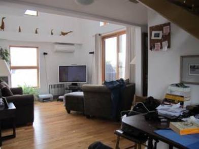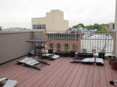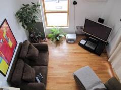 Very unique 3 level apartment on Diamond st. This sun drenched gem features a main level with an alcove kitchen, living room , bathroom, and bedroom with sliding glass doors from both the living room and bedroom to a private out deck. The second floor features a second bedroom with drop dead NYC views! While the third level is your own private viewing deck with even better panoramic views! There is laundry in the building as well as bike storage. Convenient location nestled in between McCarren and McGoldrick parks just a few block to the Nassau G train and walking distance to the Bedford L train.*Please note this is a walk up.