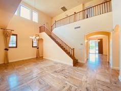 3 bedroom 2.5 bathroom former model home is upgraded with gorgeous finishes and is located on a lot that backs to the common area. Kitchen looks out to the backyard and offers granite with full backsplash, stainless steel appliances, gas range. Carpet in the bedrooms and stairs. 20" porcelain floor tile and wood flooring where carpet is not. Living room is spacious and looks out to the backyard. Living room also has gas fireplace. Den that is located directly off the front door. Wet bar next to the kitchen and dining which is great for gatherings. Bathrooms have upgraded finishes with custom tile surrounds and backsplashes. Laundry room is spacious and has a separate closet for storage. Upstairs you will enjoy the spacious loft with two built-in desks. Master bedroom has a separate space to enjoy reading or watching TV. Swimming pool and huge balcony off master bedroom overlooking common area. Community amenities include basketball court, sand volleyball, walking paths and veranda. Rental price includes pool and landscaping services. However tenant is responsible to maintain the pool and landscaping in between the services. Pet policy is no more than 2 and 25lbs or less. Once you have viewed and fallen in love with this property the application is free to complete. We do require a couple of documents up front for the pre-approval process. If the landlord chooses to move forward that is when we charge for the background check. Please contact for that specific amount.