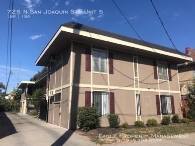725 N San Joaquin St #5, Stockton, CA is a 1 bedroom, 1 bathroom apartment for rent. It is located in the Civic Center neighborhood of Stockton. It has apartment amenities including walk-in closets.